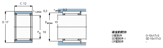SKF NK10/12TN軸承圖紙及尺寸參數(shù)