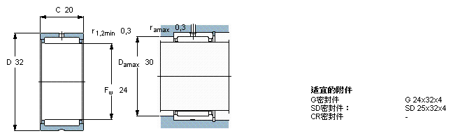 SKF NK24/20軸承圖紙及尺寸參數(shù)