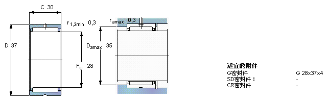 SKF NK28/30軸承圖紙及尺寸參數(shù)