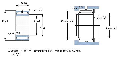 SKF NKI22/16軸承圖紙及尺寸參數(shù)